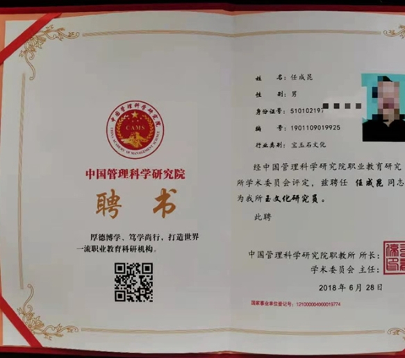 2018年,受聘成为中国管理科学研究院特约玉文化研究员。