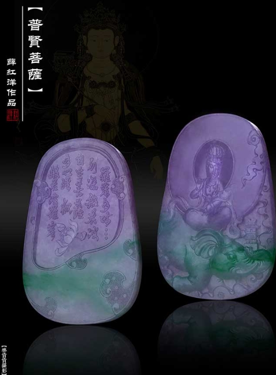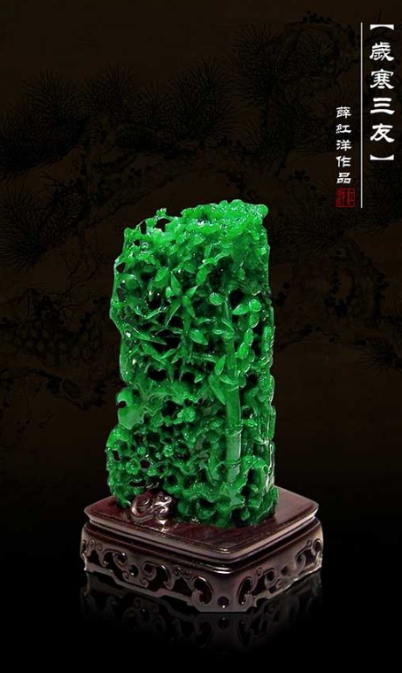 薛红洋,1976年出生于“中国玉雕之乡”河南镇平。自幼便在艺术氛围浓厚的环境中成长,同时十分喜欢艺术创作,后师从中华艺术大师李宗超先生,在老师的悉心教导下,他系统的掌握了传统的雕刻技法和创作技巧。现定居于广东揭阳阳美玉都。从艺20余载,擅长精雕各种翡翠挂饰、摆件,以人物、山水、动物花鸟题材为主,在立体雕、镂空雕、浮雕等雕刻技艺上有自己独特的见解与方法。曾设计雕刻的翡翠作品《灵芝如意》、《岁寒三友》轰动了当时翡翠界,其中《灵芝如意》摆件在2005年以3300万高价被拍出。其《岁寒三友》成交价格为2310万。众多作品在各种大赛获众多奖项。本人也对感恩社会给予了支持,在所在地为学校建设也举行了义拍活动。