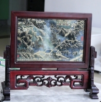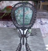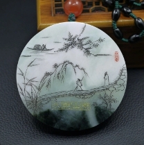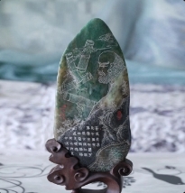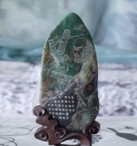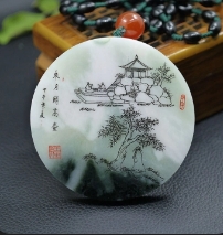 王玉敬,1952年生于河南省镇平县晁陂镇,蒙古族,1986年,王玉敬正式开始铁笔画创作,到1996年中央电视台对他做了专访,从那时起他的铁笔书画便被全国接受了。所谓“铁笔书画”,是将玉雕工艺和书画艺术相结合,用特殊的手法,在玉石上表露书画的情趣,体现玉雕工艺的文化内涵,提高收藏价值。别人做玉雕都用水去操作,但铁笔画是不需要水的,铁笔书画作品创作的全部过程都是靠着一直电子笔一个人独立完成,自己设计、制作,没有办法让别人插手。而且,对原材料没有特别的要求,但是色彩越丰富,创作出来的作品效果就越好,作品也大部分都是来料加工,原材料有独山玉、碧玉等。