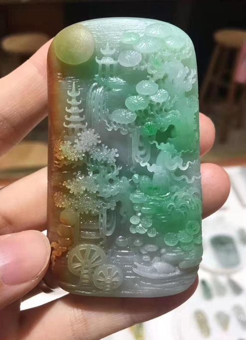 他将山水完美的融于玉雕之中,构造出山水玉雕独特天然韵味。使得作品大气中不缺细腻,阳刚中不缺柔美,形神具备。