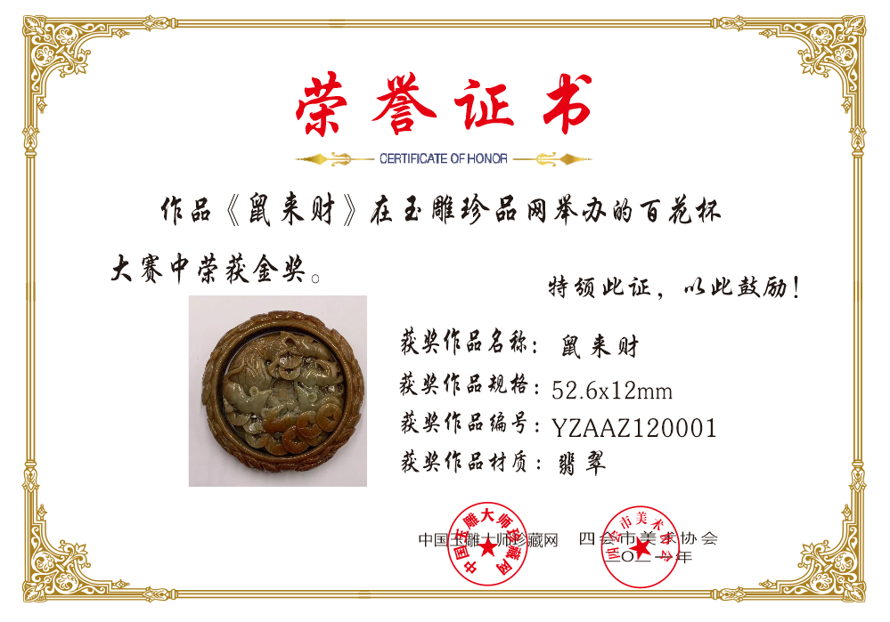 作者:宫廷玉雕第二十一代传承师杨峰。宫廷玉雕于2008年被录入国家级非物质文化遗产名录永久保护。本件藏品雕刻工艺为非遗宫廷玉雕技法被录入亚洲级非遗名录、称之为"国之瑰宝"。华夏玉文化历经8000年.源远流长。非遗宫廷玉文化技艺历久弥新. 致力于传承和弘扬中华玉文化。真正地实现每一位华夏儿女都能够拥有和收藏一件非遗玉石工艺品.千秋万代传承下去。 一起做我们华夏非遗文化的传承和代言人。