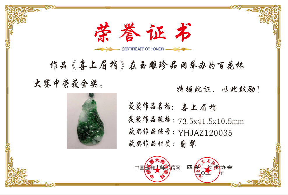 作者:宫廷玉雕第二十一代传承师杨峰。宫廷玉雕于2008年被录入国家级非物质文化遗产名录永久保护。本件藏品雕刻工艺为非遗宫廷玉雕技法被录入亚洲级非遗名录、称之为"国之瑰宝"。华夏玉文化历经8000年.源远流长。非遗宫廷玉文化技艺历久弥新. 致力于传承和弘扬中华玉文化。真正地实现每一位华夏儿女都能够拥有和收藏一件非遗玉石工艺品.千秋万代传承下去。 一起做我们华夏非遗文化的传承和代言人。